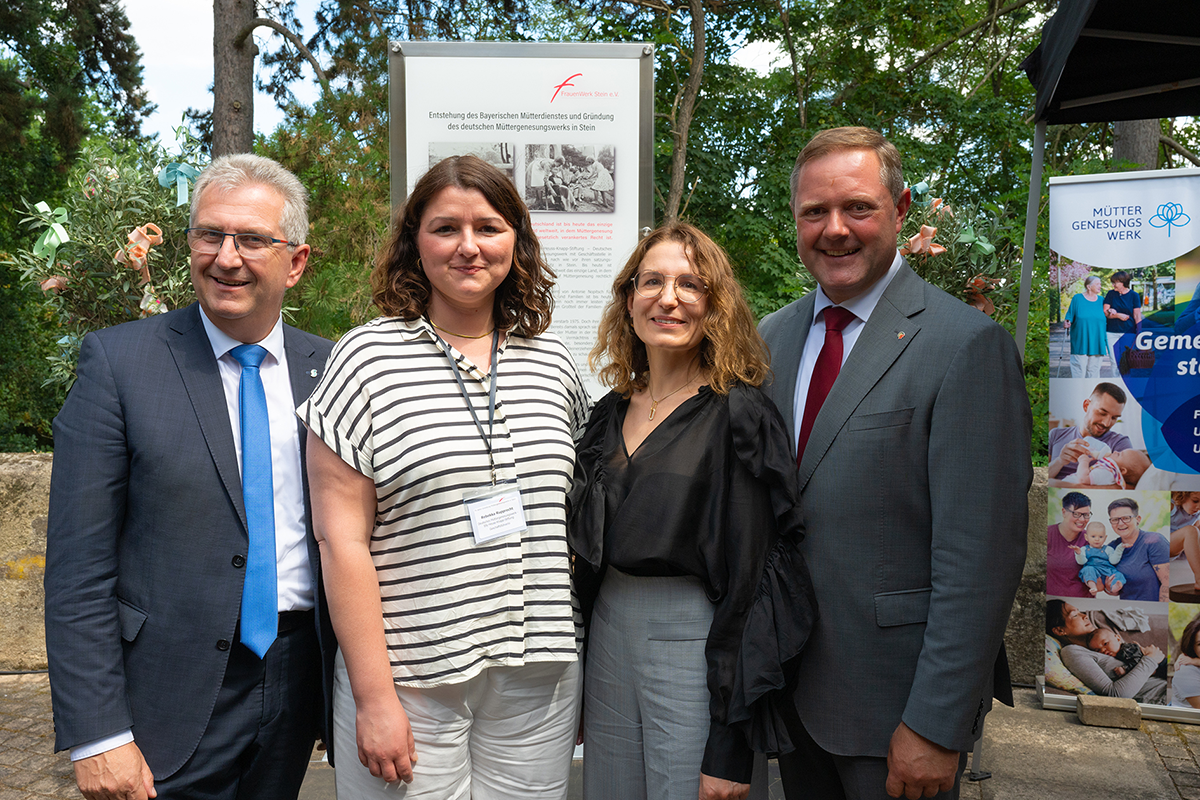 vlnr: Bürgermeister der Stadt Stein, Kurt Krömer, MGW-Geschäftsführerin Rebekka Rupprecht, 2. Vorständin des FrauenWerk Stein e.V., Julia Rodin, Landrat Bernd Obst