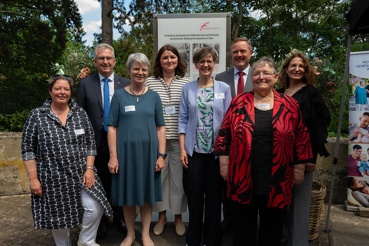 Von links: Dekanin Kathrin Klinger, Bürgermeister Kurt Krömer, Dr. Dorothea Deneke-Stoll (1. Kuratoriumsvorsitzende des FrauenWerk Stein e.V.), Rebekka Rupprecht (Geschäftsführerin Müttergenesungswerk), Sandra Schuhmann (Vorständin Diakonisches Werk Bayern, Landrat Bernd Obst, Marlene Rupprecht (2. Vorsitzendes des Kuratoriums des FrauenWerk Stein e.V.), Julia Rodin (2. Vorständnis des FrauenWerk Stein e.V.)